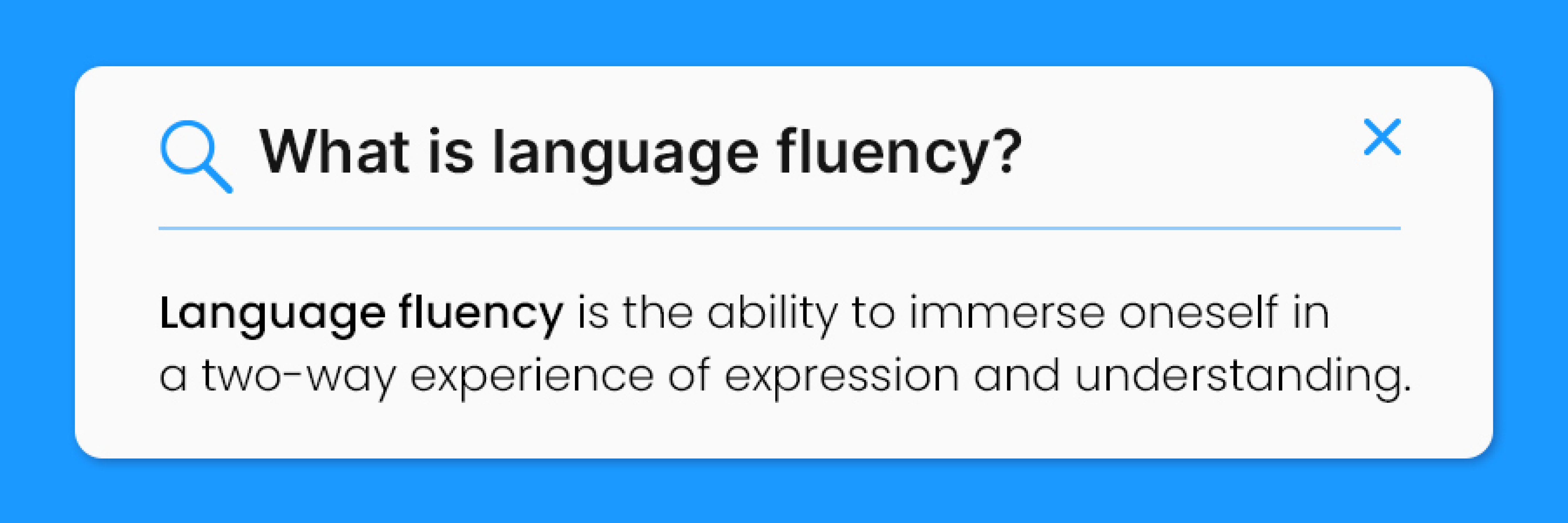 Language fluency is the ability to immerse oneself in a two-way experience of expression and understanding.