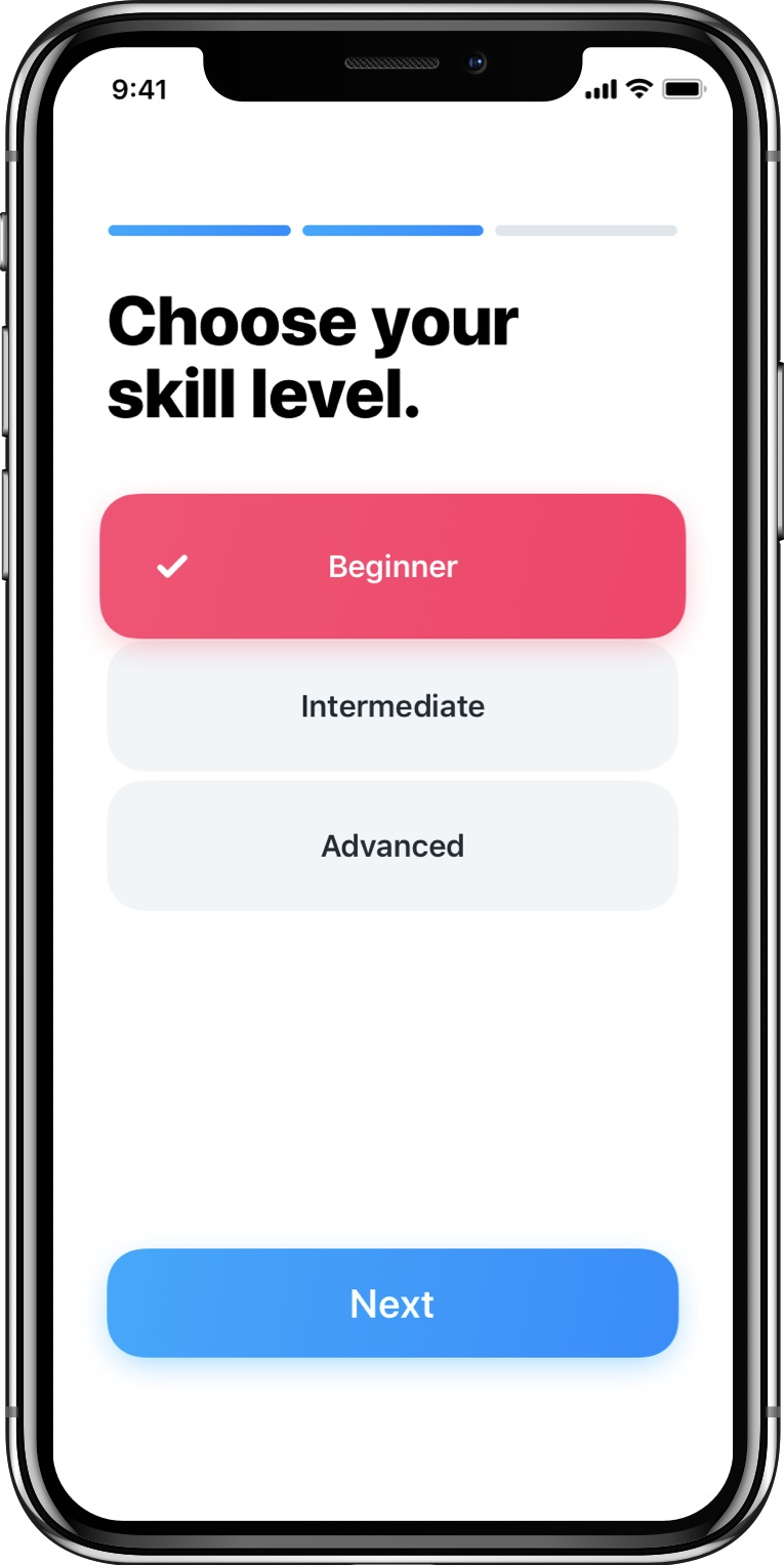 Choose from 3 skill levels for each language.