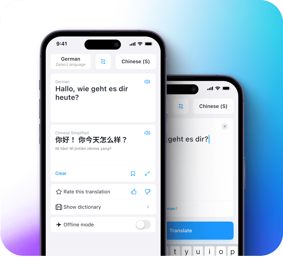 At iTranslate, your needs are our priority. Our text translation feature is designed to foster seamless communication and break language barriers. Whether you're connecting with international friends, traveling, expanding your business overseas, or otherwise, our user-focused approach makes translation a breeze. And with our premium version, you can enjoy even more exclusive benefits, like voice mode, offline mode, and camera translation. Your passport to enhanced cross-cultural interactions awaits!